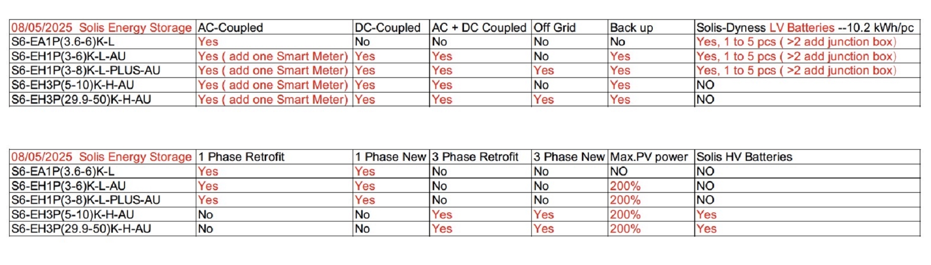Comparison Table of Solis Inverter Functions | 13-10-2025 |